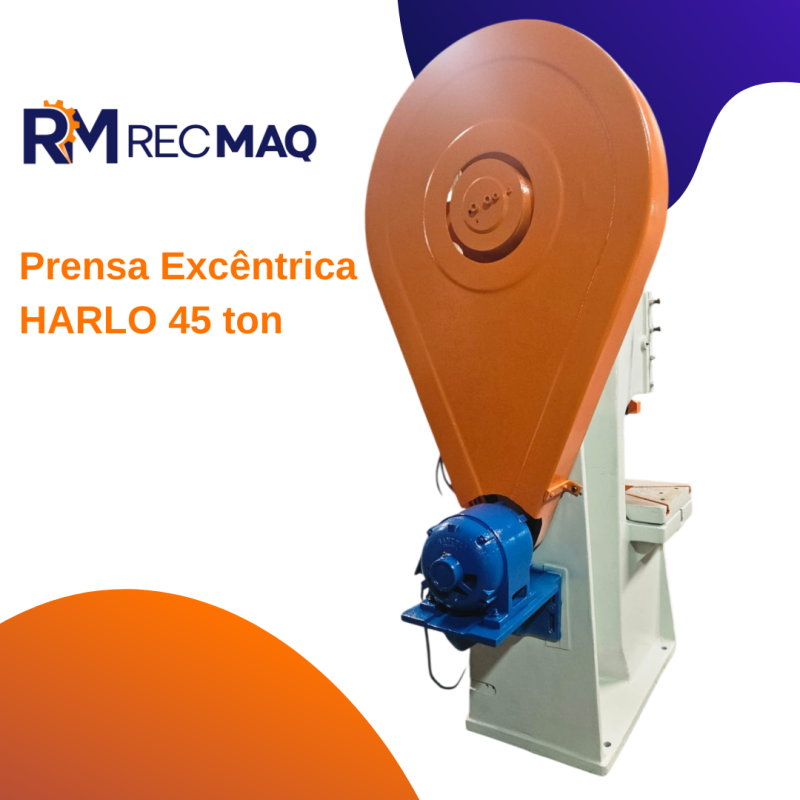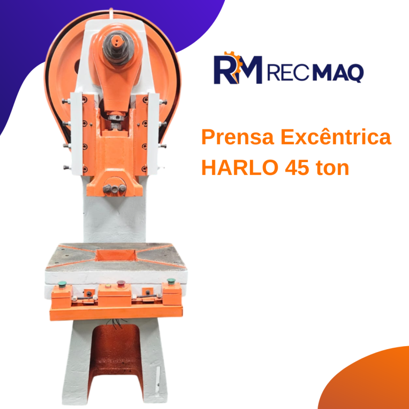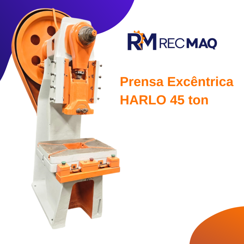 Prensa Excêntrica 45 ton Marca: HARLO Capacidade: 45 ton Mesa: 690 x 480 mm Altura : 340 mm *DISPONIVEL PARA TESTES*