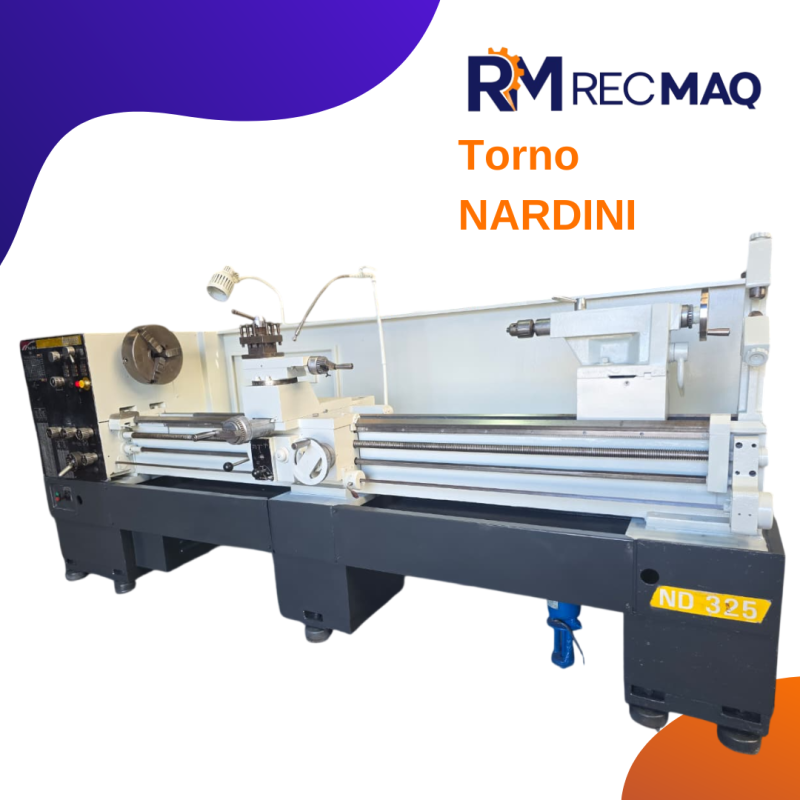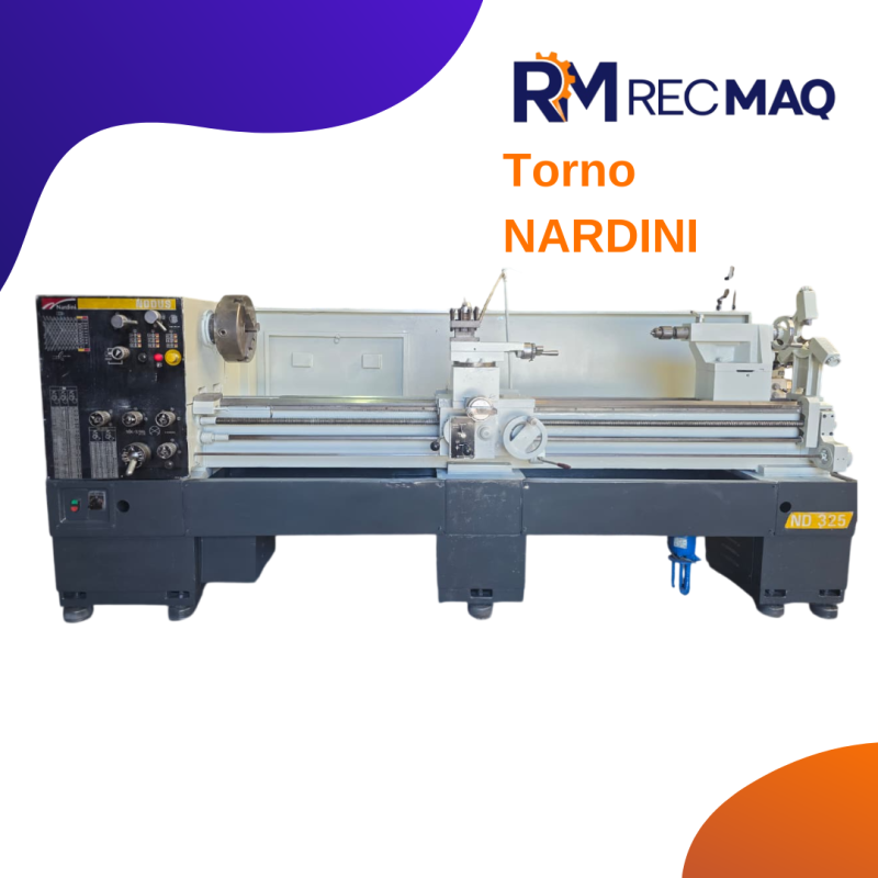 Torno Nardini NODUS 325 Modelo: ND 325 Diâmetro sobre o barramento : 650 mm Diâmetro sobre o carro : 475 mm Comprimento entre pontas : 2.200 mm Largura do barramento : 270 mm Diâmetro do Eixo Árvore: 46 mm Motor : 8 CV